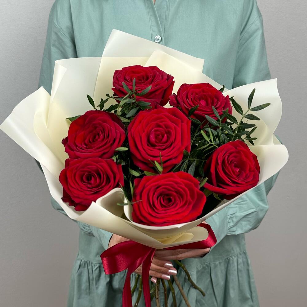 Элегантный букет «Гранатовый» из насыщенно-красных роз — воплощение страсти и благородства. Идеально подобранные бутоны в стильной упаковке расскажут о ваших чувствах лучше любых слов. Прекрасный выбор для романтического признания или особого торжества. Доставка свежих цветов от Афло.