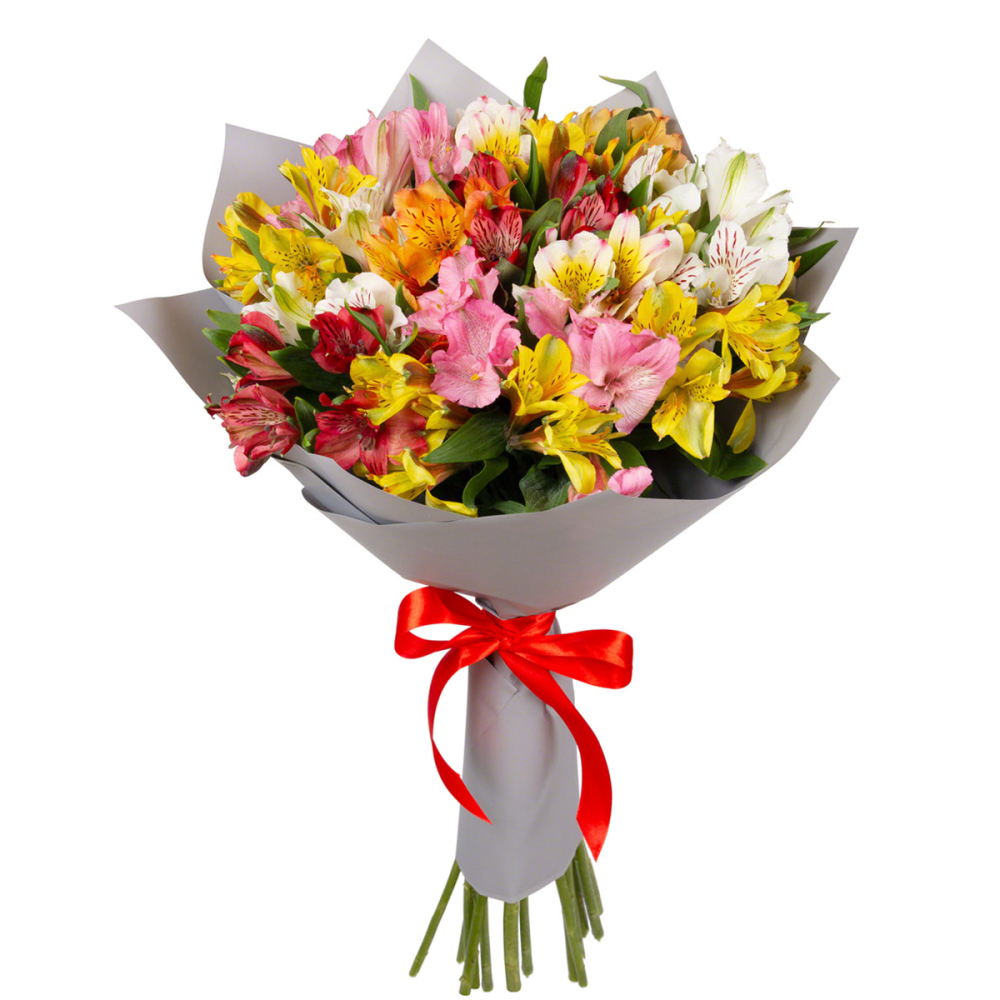 Яркий букет «Рассвет» из разноцветных альстромерий — это взрыв красок и эмоций!