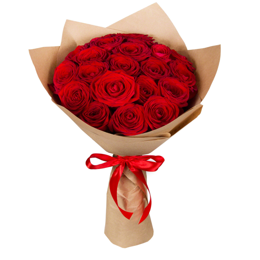 Букет из 21 красной розы в крафт-бумаге